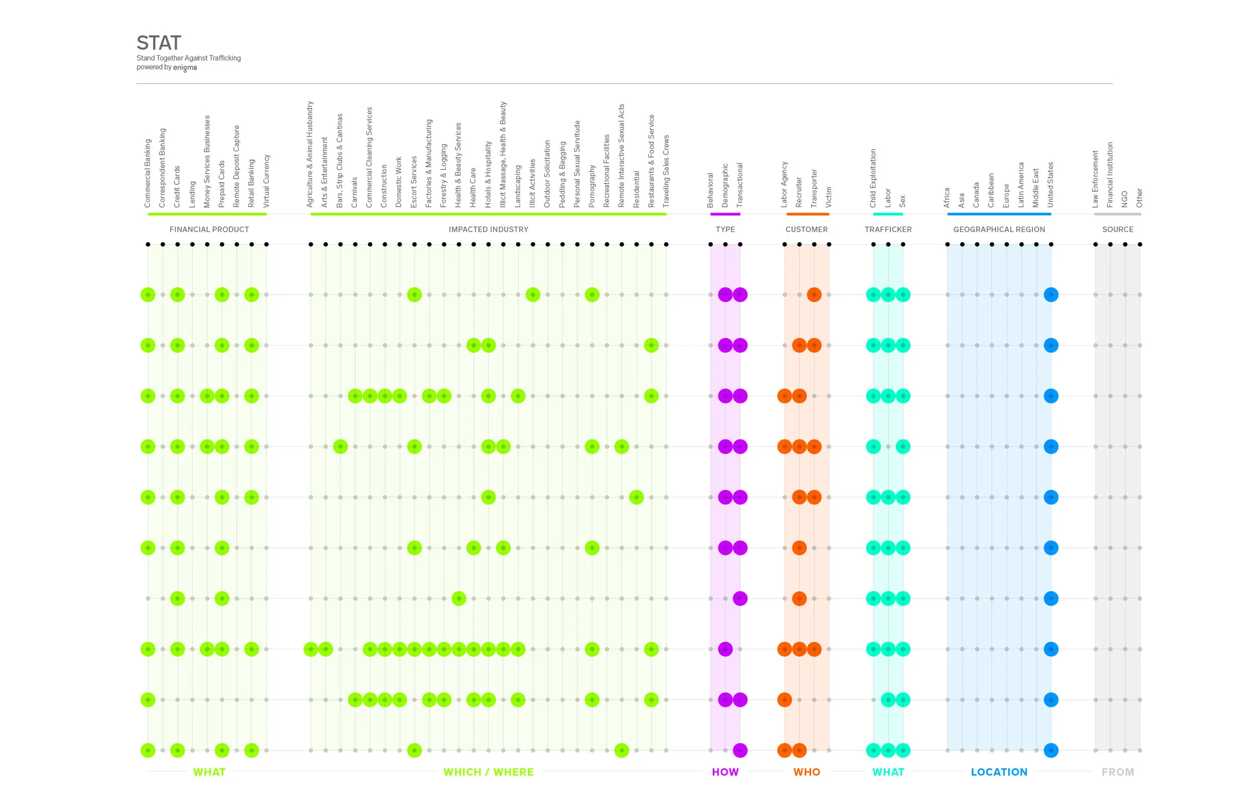 STAT’s ultimate goal is to put effectively-formatted and up-to-date human trafficking indicator information into the hands of financial institutions, law enforcement and NGOs, providing critical insights so they can act quickly to save lives.
